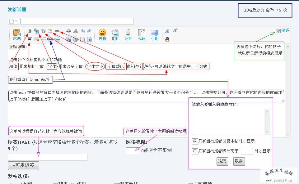 各个标签功能,大家可以在发帖的时候测试!具体标记如下: 点击图片可以放大查看 阅读全文>