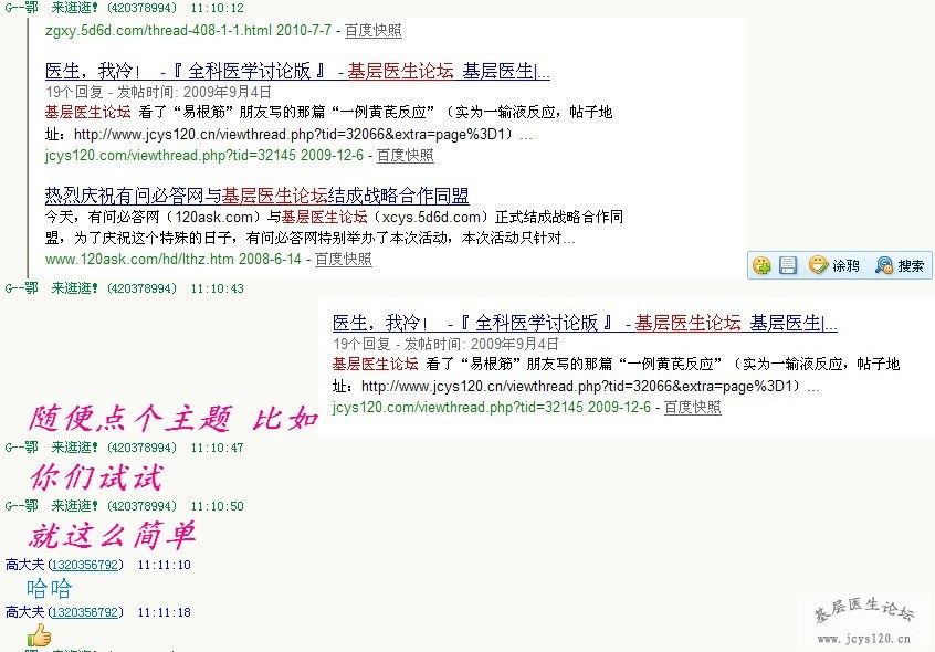 泡过不少医学论坛,像丁香园、***……自从去年知道了基层医生论坛,发现用道们介绍的经验很好、很实用!贴近我的实际,很适合我! 阅读全文>