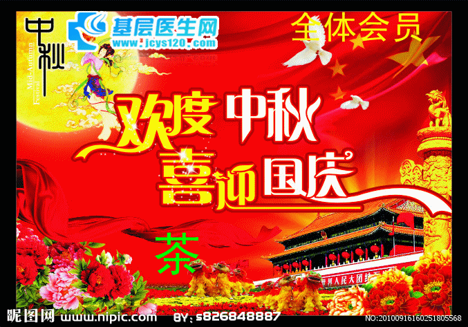 举国欢庆齐欢畅,龙腾虎跃在神洲!欢祝国庆,共度中秋!在这美好日子里,基层医生网恭祝您及家人中秋节、国庆节快乐!值本次中秋、国庆双节来临之际,为了感谢大家的支持,希望大家能够在基层医生网进行专业学 ... 阅读全文>