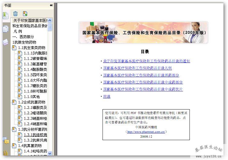 《2009年国家基本医疗保险、工伤保险和生育保险药品目录》 最新的资料,大家共享! 使用说明:可利用 PDF 书签功能查看所有类别导航(细至三级类别),也可通过附录数据库在线查询功能查询药品,点击可 ... 阅读全文>