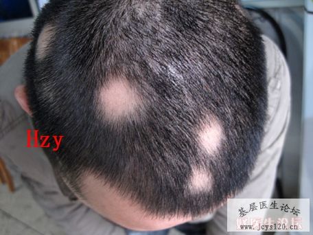 患者 男 36岁 脱发 6个月 患者6个月前出现脱发,无搔痒,开始有轻度脱屑,后来脱发的地方皮肤发亮,开始只局部一点,最后发展到整个头部,在本地大医院诊断:斑秃 神经性皮炎 治疗:派瑞松 乐肤液 外用 强的 ... 阅读全文>