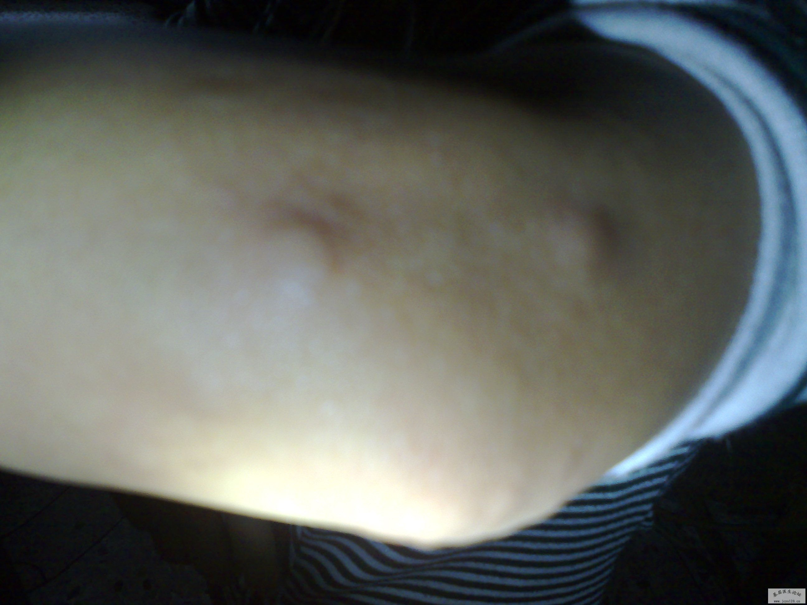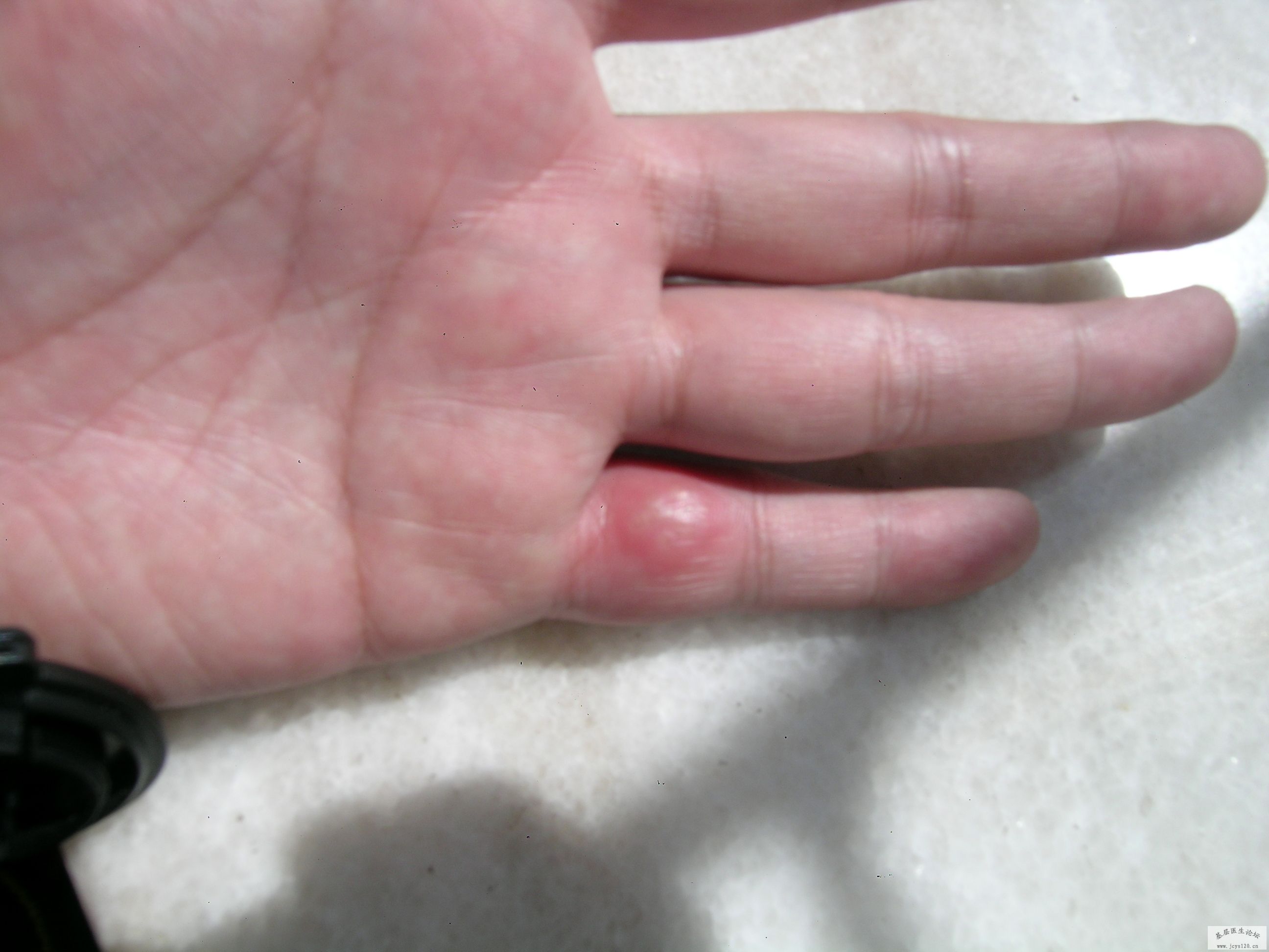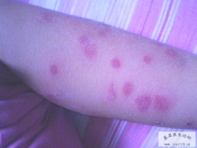 前天遇到一患者,女,35岁,被一不明飞虫咬伤右大腿前侧,伤口中间有一0.2CM白点,周围皮肤红肿约10CM*10CM,压痛明显,皮下组织较硬,不痒,患者怀疑是蜜蜂所致,说当时被咬伤时疼痛剧烈,因是在楼顶晚上没看清是什 ... 阅读全文>