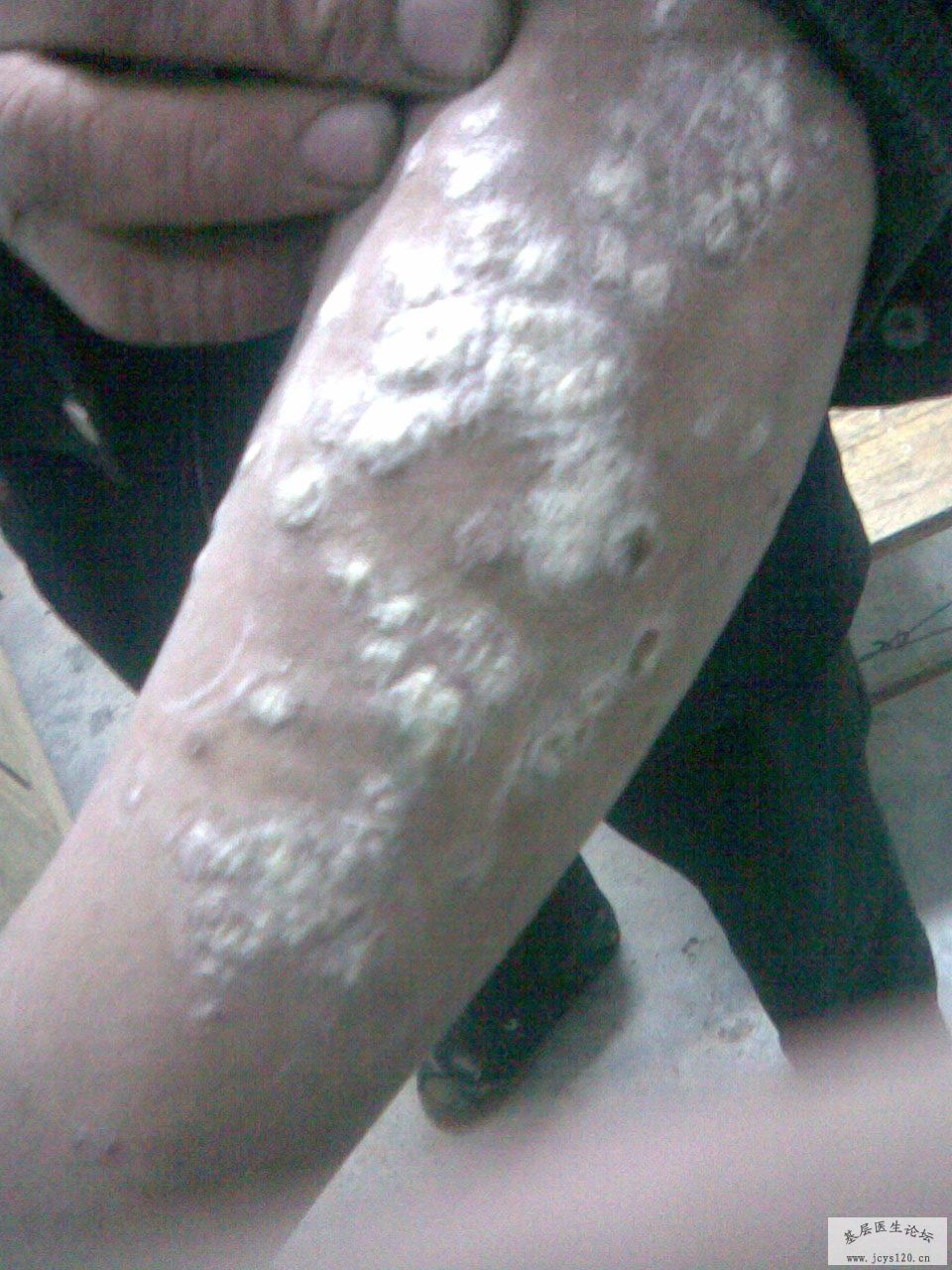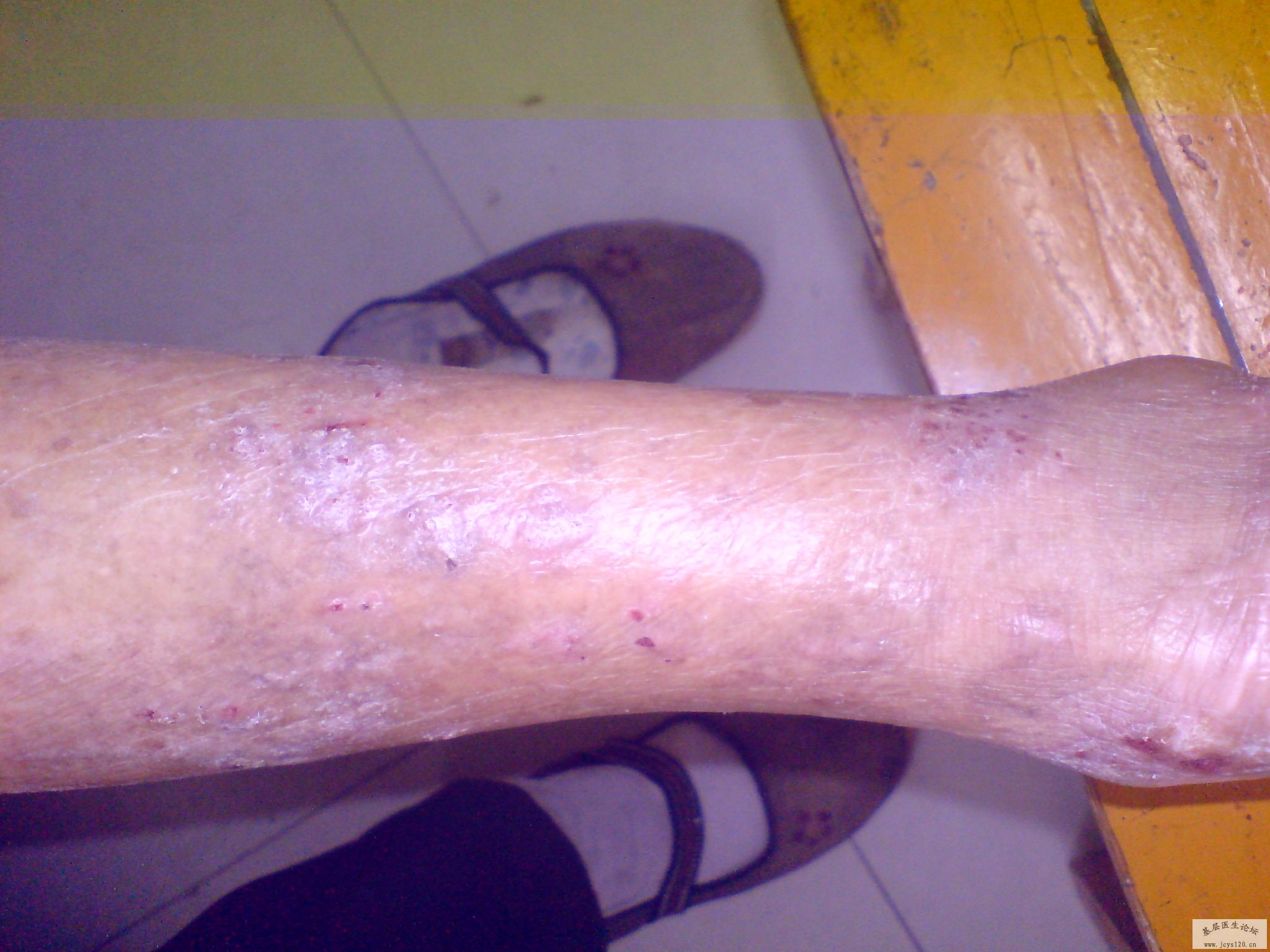 男,40岁,病史10余年,瘙痒,脱皮,经常用一种叫做曲安缩松的长效激素治疗,只是控制,不能根治,今来我处就诊,由于长期使用激素,我不敢治疗,故拍下照片,请求大家帮忙诊治!多谢大家 ! 阅读全文>