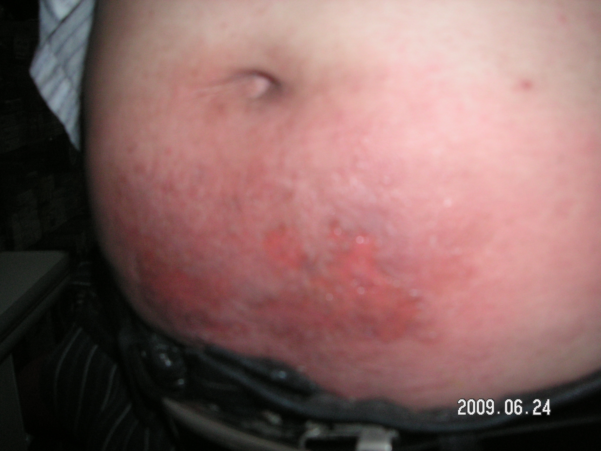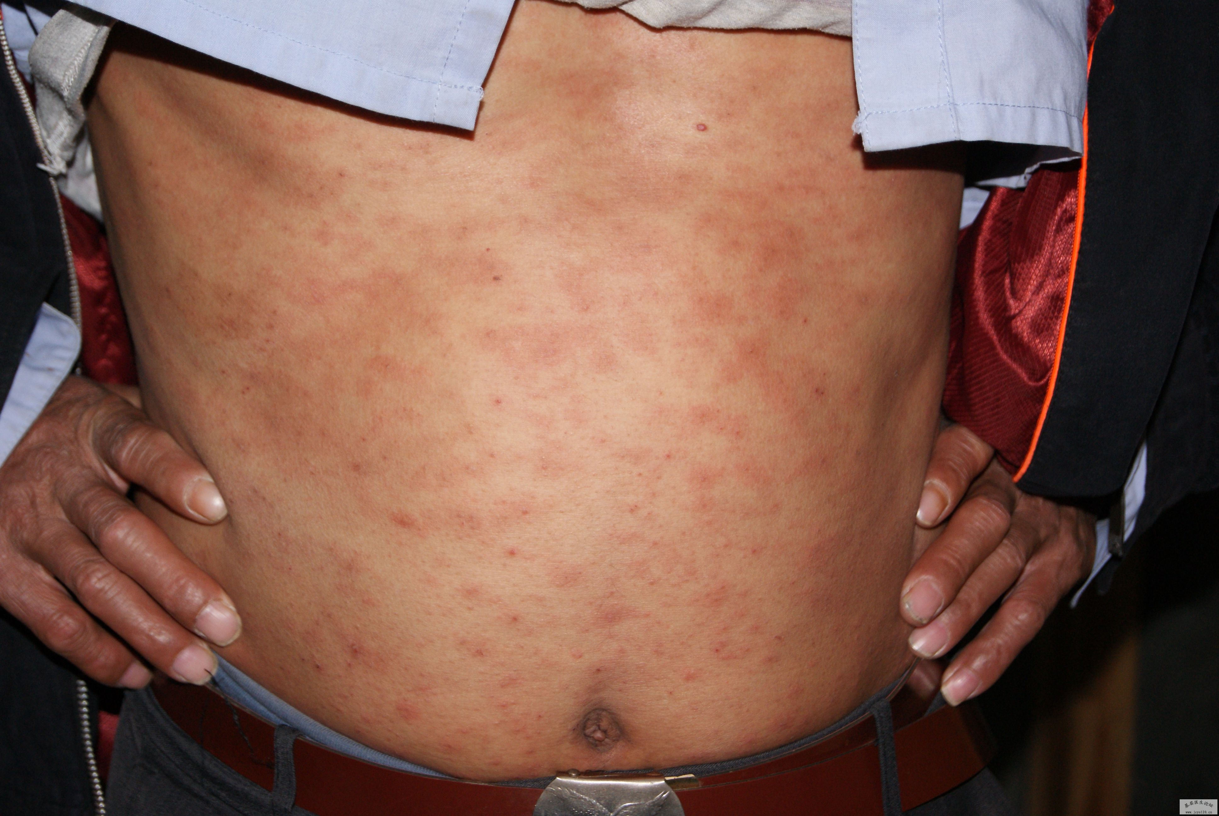 男 52岁 诉已连续5年在肚脐下至皮带头处长丘疹极痒,抓后溃烂〈如下图〉。 请问是什么病,是慢性湿疹吗?该怎么治,用什么药。 阅读全文>