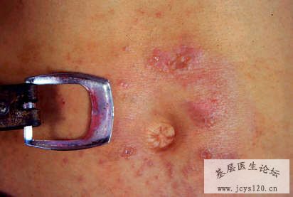 男性,87岁,皮疹以脐周为主(见图),瘙痒,反复发作,现给予扑尔敏地米维丁胶性钙痒苦乐民治疗,请大家看看,是什么病,该怎样治疗? 阅读全文>