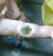 男,51岁,建筑工地工人,27日进行草酸磁砖清洗时,忘记带手套,晚上来诊时如图: 自述不痒,微痛,稍肿!其它无任何异常! 那个黑色的地方是,在平日工作中使用工具,打起的水泡,结果被草酸接触,水泡消失,成 ... 阅读全文>