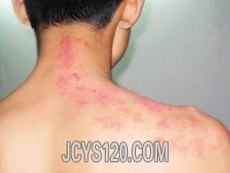 一般资料: 患者,男45岁,体重55kg,已婚,农民。 主诉:后颈部丘疹红斑,扩大1周。 现病史:患者自述一周前无明原因出现后颈部红点,轻度瘙痒不痛,以为是虫子叮咬。没治疗一周来红斑扩大(如图)。全身其他部 ... 阅读全文>