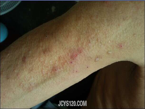 病例;国**,男,42岁,农民,10年前因精神刺激致两肘部发生对称性奇痒,日久局部皮肤呈苔癣样变,每逢春夏瘙痒加剧,有时抓搔流黄水,起血痂,有时皲裂痛痒发生感染。经口服中西药和外擦药物无效,于2008年8月来我 ... 阅读全文>