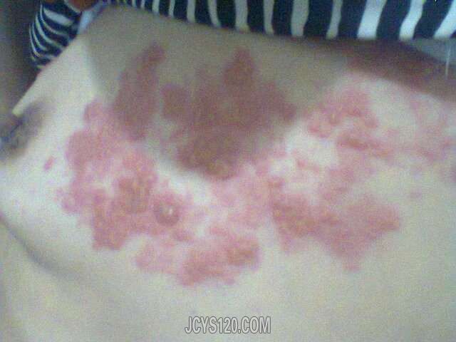 患者,女,59岁,有糖尿病史,不明原因的出现此种疱疹,抚摸有疼痛感,左侧乳房外下象限和背部两处存在,其他地方未见,自行涂抹阿昔洛韦软膏,效果不佳!请大家出出办法! 阅读全文>
