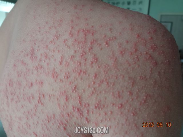 不知什么原因,我中午发出了贴,但就是看不见,现在重新再发一贴。 患者,女,37岁,,小学教师,于今年5月份开始发作皮肤瘙痒(具体见图片),来我诊所先给予舒极膏外用和氯雷他定口服,未见疗效,后给予 ... 阅读全文>