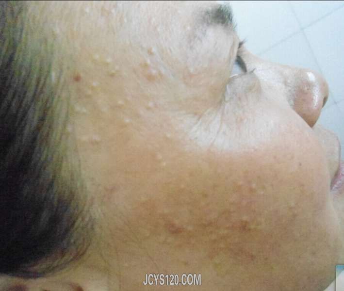 女,50岁,一月前在脸一侧出现散发性白色丘疹,无痛无痒,另一侧没有,大家看看这是粉刺吗?本例特点1,年龄偏大,50岁。2,单侧出现。请老师指导。 阅读全文>