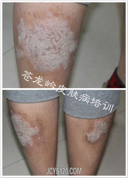 一老头来拽起裤脚问看看有什么好药给治一下,我一看小腿接近足背处有一手掌心那么大的苔藓样变,表现为皮纹加深、皮嵴隆起,皮损变为暗褐色,干燥、有细碎脱屑。斑片样皮损边界清楚,边缘有小的扁平丘疹,自觉症状为 ... 阅读全文>