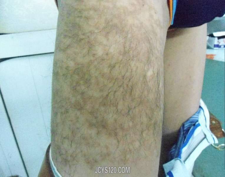 男,25岁,自述在四五岁时出现,在右侧大腿出现一片黑色斑点,局部汗毛增长增黑,近几年慢慢扩大。请老师诊断一下。 阅读全文>