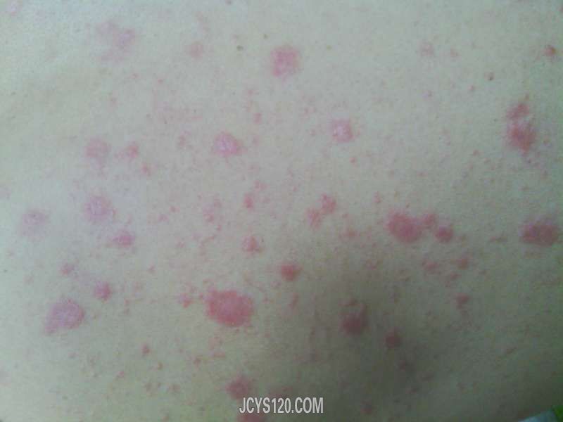 男性 26岁 诉连续2年一到夏天就起这样的小红疹子,瘙痒,主要分布于上肢,两手臂,以躯干最多,怕热,患者经常光膀子,一到晚上开空调凉快过来以后,皮疹就会消失,到第二天上午又开始出现,我怀疑是1.接触性皮炎( ... 阅读全文>