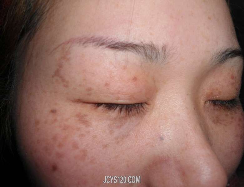 患者。女,35岁,自述五年前生过孩子后出现双颊黑斑,逐渐加重,去某医院进行点药腐蚀治疗,但疤去后黑斑依然存在,此人无慢性病史,无不良嗜好,仔细观察此斑颜色"青黑",类似“黄褐斑”,斑片面积大小不等,眼周明 ... 阅读全文>