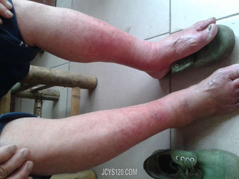 患者女81岁,于一星期前去稻田里捡稻穗,田里有点水,穿着凉靴挽起裤脚捡了一天。第二天起来出现了上面面的症状 。患者感觉有轻微的瘙痒与芍热感,下肢水肿的有点行动不灵敏余无异常。查体:血压130/80,T;36.5 ... 阅读全文>