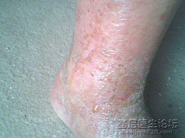 今天我收治一病人:男,75岁,查体:双下肢踝关节部位可见:弥漫性潮红之粟粒大小丘疹、丘疱疹,膝关节以下有中度水肿,按之有凹陷,皮肤潮红,疱疹严重处有溃烂面、有结痂、有渗出液,结痂处皮肤伴有浸润性肥厚 ... 阅读全文>
