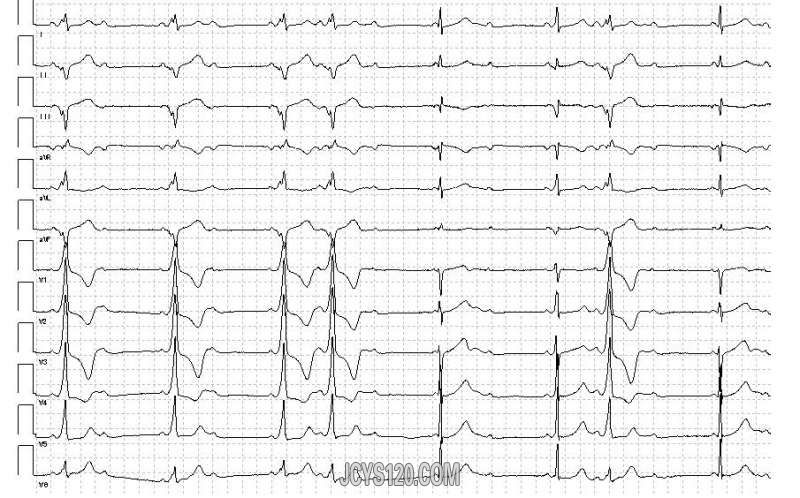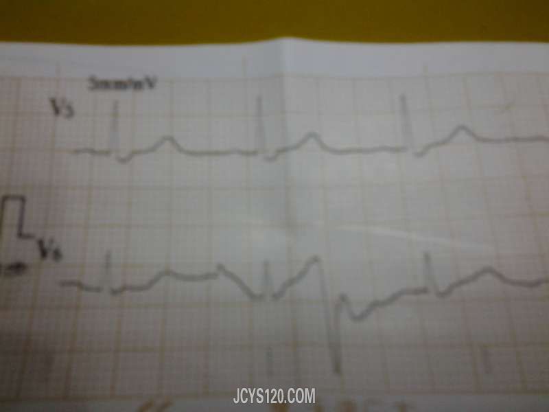 各位老师好,帮忙分析一下这份心电图。患者女,81岁,近期感冒后出现咳喘,体温正常,双肺呼吸音粗,满布干湿罗音。心音低,律齐,各瓣膜未闻及杂音,这是今上午做的心电图,帮忙分析一下。 手机像素有点低,模糊, ... 阅读全文>