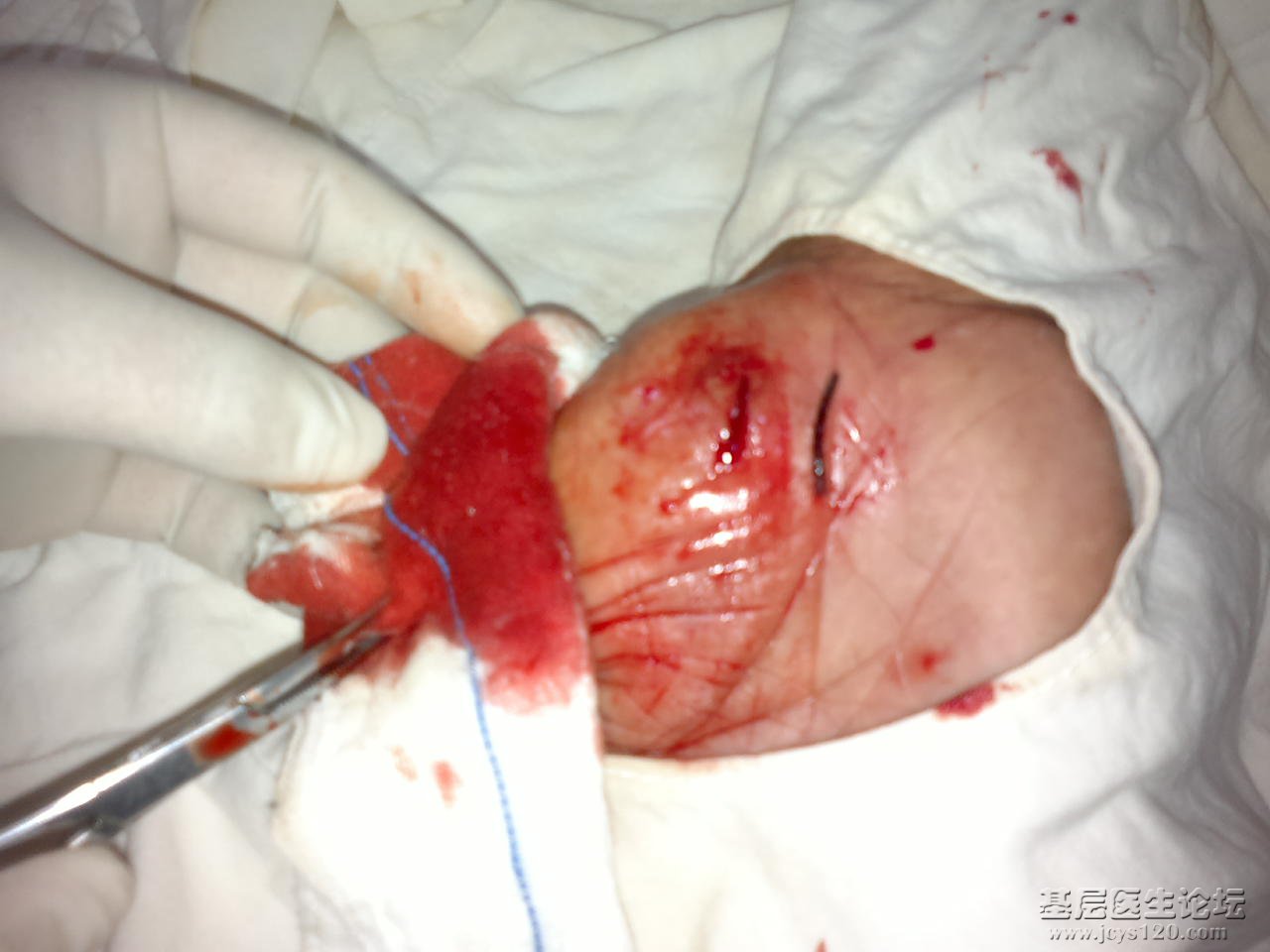 今天接诊一外伤病人,被铁器划伤右手前臂伸侧中段,伤者用左手按住伤口,查见伤口斜行,创缘欠整齐,约2.5x0.5x0.6cm,见一静脉血管终止,距伤口下端4cm处有一明显血肿,约鸡蛋大,缓慢渗血,颜色暗红,用生理盐水棉 ... 阅读全文>