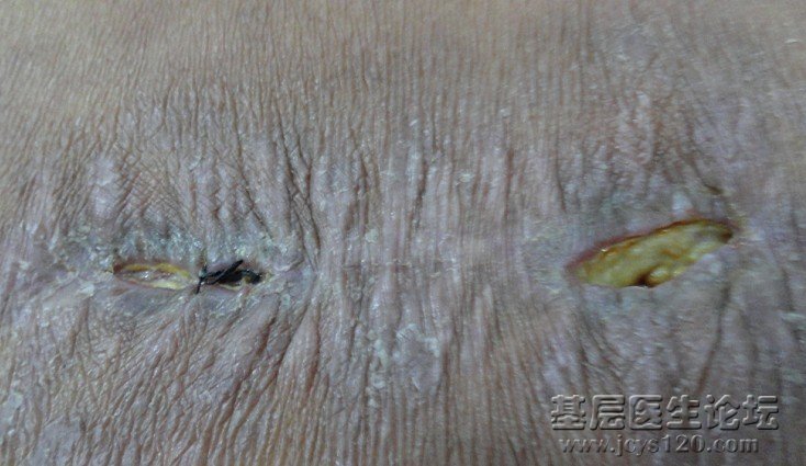 病人右手前臂外伤10小时后,来我院就诊,彻底清创,缝合后,输液五天。伤口愈合好。每隔两天来院换药一次,今天第十天,换药时,伤口干结,但稍有裂开。缝线没有松。用力按压有少许渗出。请各位高手支招。谢谢! 阅读全文>
