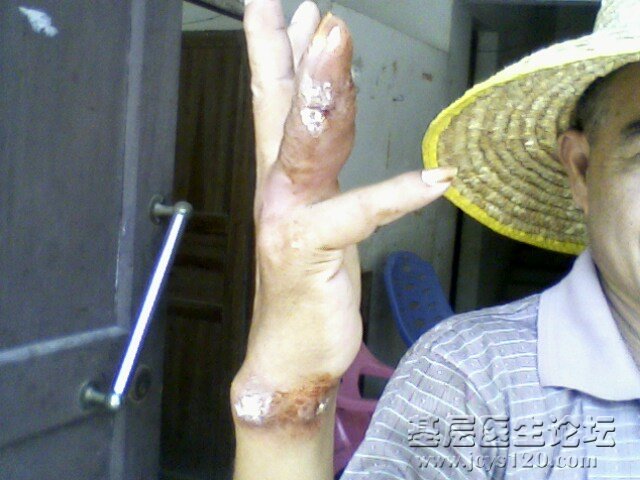 患者男性,56岁,主因外伤后5天而就诊。(先前我发的帖子针灸后下肢血肿的病人)。 患者5天前骑自行车上坡时不慎摔倒,造成左侧下肢膝盖下擦伤,自行在家处理(具体不详)。来时见伤口外被创可帖紧密包 ... 阅读全文>