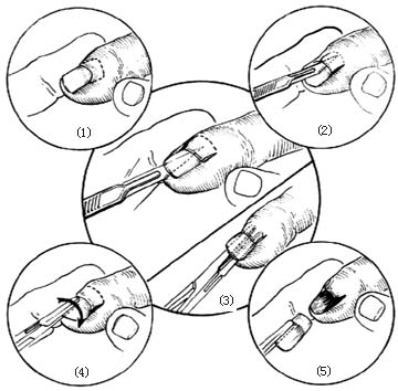 [适应证] 甲沟炎已侵入甲下形成甲下脓肿者,嵌甲合并感染者,均应拔除指甲引流。 [术前准备] 1.根据病情合理选用抗生素。 2.对严重手部感染,全身情况衰弱者,应注意改善全身情况,提高身体抵抗 ... 阅读全文>