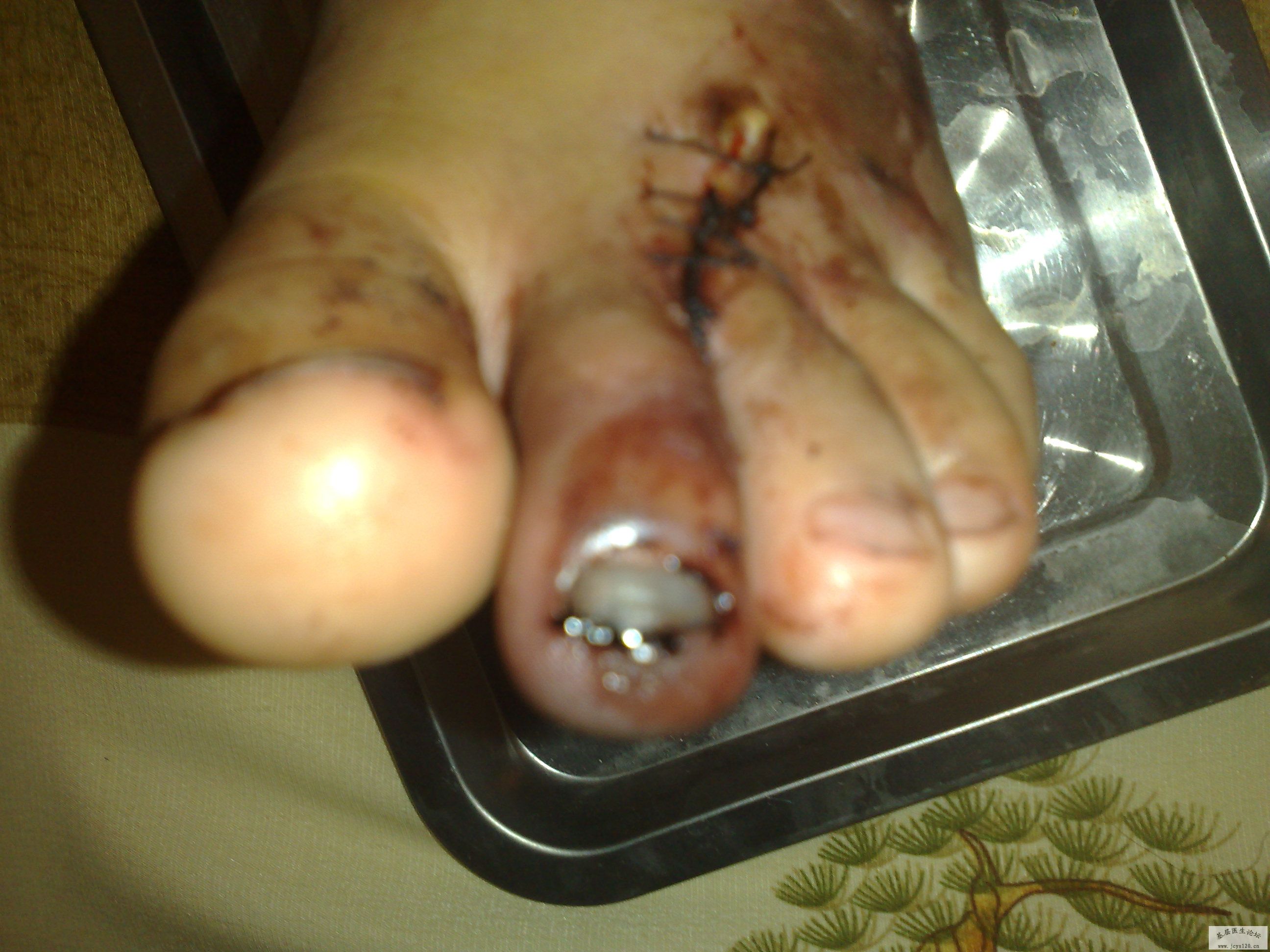 男性 20岁 主诉:外伤伤及左足疼痛流血2小时。 现病史:患者于2小时前因外伤伤及左足疼痛流血来诊。查体:P90次每分 Bp 110 50毫米汞柱 神清 心肺无异常。X线:左足第二足趾撕裂性骨折诊断:左足第二足趾挫裂 ... 阅读全文>