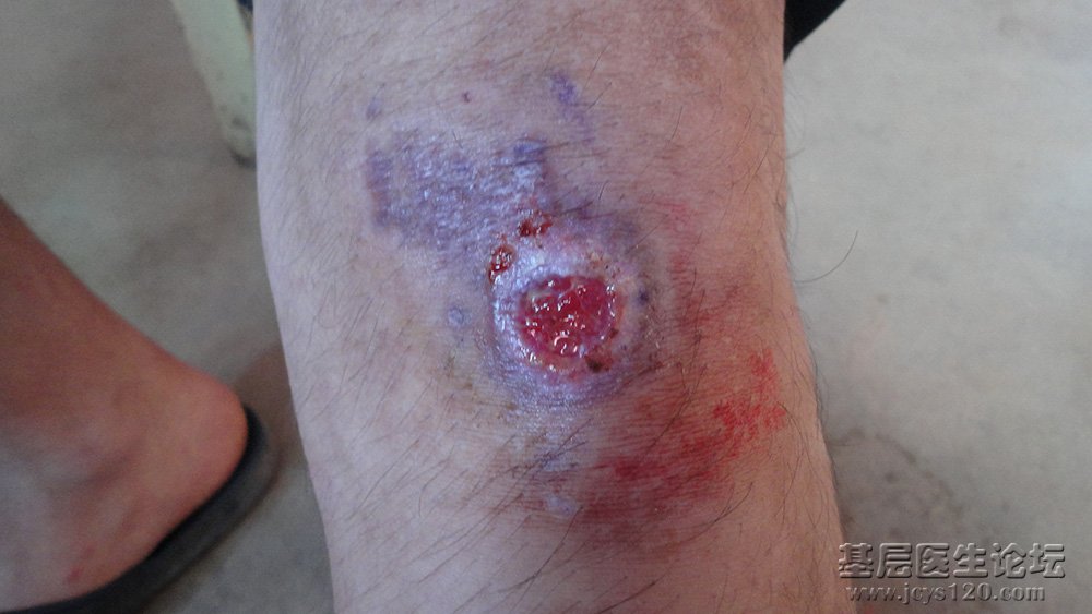男18岁学生,一月前骑车摔伤左侧膝盖下方,近20天伤口未愈前来治疗。伤口约3*2CM、呈感染状,周围组织肿胀。处理:1、消肿抗感染,2、清创换药。一周后伤口已无感染、肿胀,可见不良增生肉芽,用50%糖+庆大外敷 ... 阅读全文>