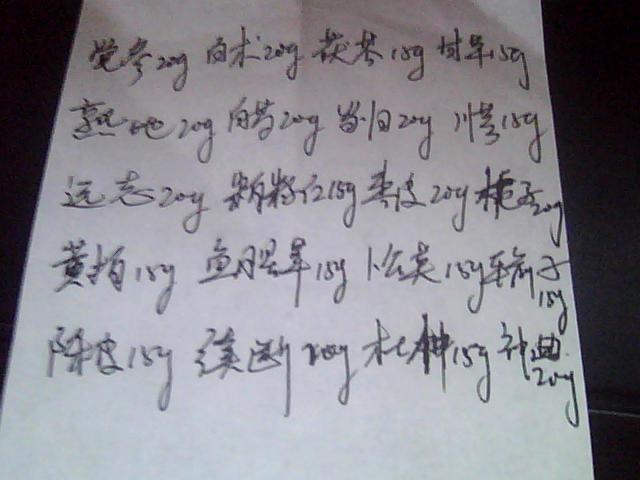 我有前列腺肥大,精索静脉曲张,还有点勃起不硬,难以勃起的症状。 太子参:30 五味子:10 黄柏10 薏仁15 炮山甲:10 续断:15 丹参:15 川牛漆15 桑寄生:20 仙茅:15 还有二个我不知道医生写的是啥了 ... 阅读全文>