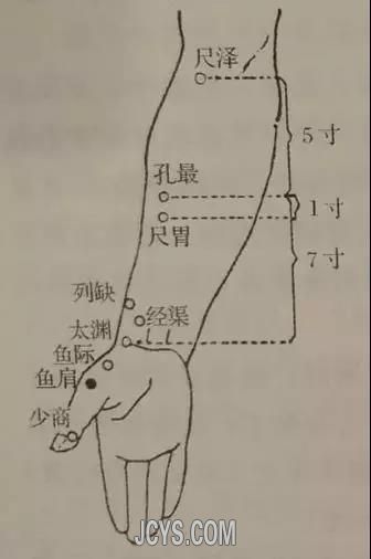 1、尺泽:仰掌,肘部微屈,在肘窝横纹上,肱二头肌肌腱外侧处./泄肺热,降逆气./ 2、孔最:前臂桡侧,腕横纹上7寸./调降肺气,清热止血./ 3、列缺:在桡骨茎突的上方,腕横纹上1.5寸,即左右两手交叉时,当一 ... 阅读全文>