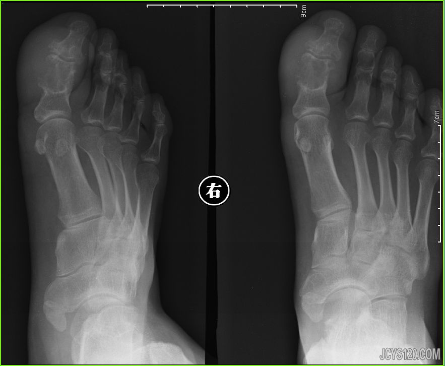 男,40岁,足趾肿大,偶有疼痛数月,近几日加重。 检查可见拇趾周围软组织肿大,密度增高,骨组织密度减低,边缘清晰。 阅读全文>