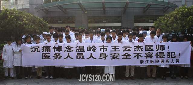 浙江温岭:上百医务人员聚众抗议 “零容忍”医疗暴力 2013年10月28日上午,浙江温岭市第一人民医院内,数百名来自温岭医疗系统的医务人员举着医疗暴力“零容忍”、维护正常医疗秩序等牌子举行抗议,期望当地市ZF ... 阅读全文>