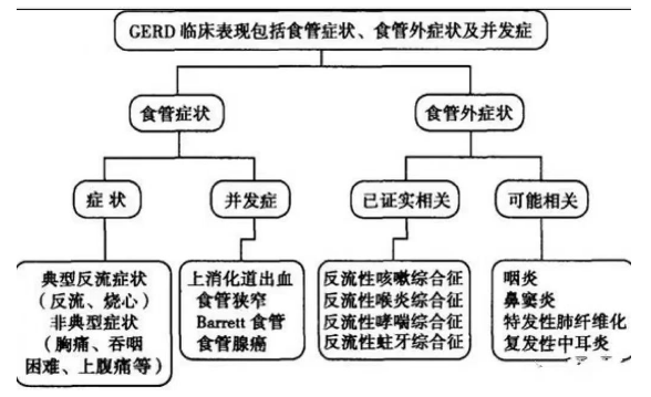 胃食管反流病,即胃、十二指肠内容物反流到食管,甚至到咽、鼻、喉、气管。引起食管炎症、糜烂、溃疡或狭窄,甚或癌变;还能引起有大约有70多个非典型症状,比如胸痛、吞咽困难、咽喉炎、慢性咳嗽和哮喘等等,极易造成误诊。 我所误诊的几个病例,症状都不大典型,误诊的有冠心病、支气管哮喘、慢性阻塞性肺病。虽然没有造成太大的遗憾,但是毕竟心里不舒服,因为每个医生都希望自己的诊疗是0失误。 今天总结出来,希望同行及患者朋友能够引起重视。 一、胃食管返流症的简单介绍 胃食管反流病,就是胃食管连接处的抗反流机制不能阻止胃、十二指肠内容物反流到食管,以致胃酸、胃蛋白酶、胆盐和胰酶等反流物质损伤了食道粘膜,引起炎症、糜烂、溃疡或狭窄,甚或癌变。 一、发病的机制大致有以下4个方面: 1、抗反流屏障功能低下 2、食管廓清能力降低 3、食管粘膜的屏障功能破坏 4、胃、十二指肠功能失常 二、依据反流物到达的部位不同,胃食管反流病可分为四期,分别是: 1.胃食管期 胃内容物进入食管,引起烧心、胸痛、背痛、嗳气等。 2.咽期 反流物到达咽喉部,引起咽喉疼痛、咽异物感、声音嘶哑等。 3.口鼻腔期 反流物到达鼻腔、中耳,引起流清鼻涕、打喷嚏、鼻塞、耳鸣、听力下降等症状。 4.喉气管期 反流物进入气管,引起咳嗽、咳痰、憋气、哮喘、吸入性肺炎、肺纤维化等。此期症状最重,严重影响患者生活质量,甚至可能发生喉痉挛,危及生命。