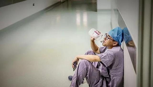 ▲图中的医生是安徽医科大学附属第二医院的陈磊。一台器官捐献手术,他和十余位医护人员紧张忙碌了一天。走出手术室感到头晕,便靠墙坐了下来。护士长看他劳累过度,赶紧拿了瓶葡萄糖给他补充体力。