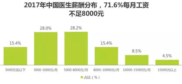 现实中的医生并没有他们身上的白大褂一样光鲜靓丽。他们每天都在顶着巨大的工作生活压力。据《The3 u' @2 Q2 ]6 L" f9 K, v5 n 医生每天都要忙于门诊、手术、写病历等事情,实际的工作强度很高。 77%的医生表示曾一周工作超过50个小时,24.6%的医生工作时长曾超过80小时;43.5%的医生表示曾留宿8次,留宿次数在11次以上的医生升为20.0%。 因为长期处在高度紧张的工作生活压力之下,医生的自身健康问题也出现了状况。近几年,“健康守护者”医生的健康现状令人担忧。调研数据显示,医生常患有因过劳导致的疾病,如由长期饮食不规律导致的肠胃炎;长时间伏案或手术工作导致肩颈炎、腰肌劳损、腰间盘突出,或因精神压力导致的偏头痛、抑郁症等疾病。而永远地倒在工作岗位上的医生也时常可见: ◎2018年6月28日惊闻噩耗,浙江邵逸夫医院年仅26岁的规培医生陈德灵猝死。再翻看他之前的朋友圈,总是在劳累的上班、值班之中,“一宿没睡”更是家常便饭! ◎2018年1月,安徽六安裕安区一位医生猝死了,年仅31岁。猝死的地点是医院值班室。这位医生叫方培虎。他有着和绝大多数医生类似的经历:连轴转,又忙又累,积劳成疾……不幸的是,别的医生硬撑了下来,而方培虎却再也没能在值班室内醒来。 ◎2018年1月23日11时40分,青海大学附属医院急诊外科大夫郭庆源值完夜班后突然出现胸闷、心慌、气憋等症状,后做了心电图初步排除心梗,大夫建议住院。就在同事在帮助办理住院手续时,郭大夫突然出现抽搐症状后呼吸暂停,经四个小时抢救无效死亡。郭大夫年仅43岁,2009年从武警医院转业到地方医院,事发当晚共接诊38人。 …… 付出没有换来高回报 医生的辛勤付出有目共睹,那他们的回报是什么?据国家统计局报告,2017 年全国医生平均年收入为 7.4 万元。这个收入是怎样的一个水平?另据《The Lancet》2017年的调查报告显示,7成医生每月工资不足8000元,一线城市难购房。整体来看71.6%的医生工资水平低于8000元/月,工资在10000元/月以上的医生占比仅为13.1%。以北京为例,2017年北京市内五环的房子大多在7万/平米以上,养家糊口的压力可见一斑。