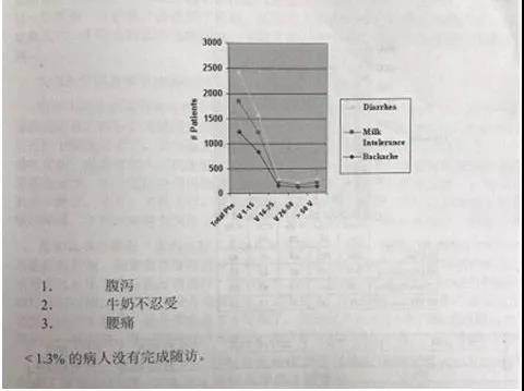 图2-5:腹泻 牛奶不兼容性和背痛症状消失的治疗次数
