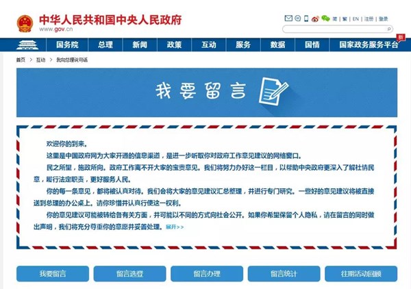 即日起至2020年全国两会期间,中国政府网(www.gov.cn)联合多家网络媒体平台,以及各省区市、相关部委政府网站开展“我向总理说句话”网民建言征集活动。