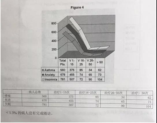 图2-4:哮喘,焦虑,失眠症状消失的治疗次数