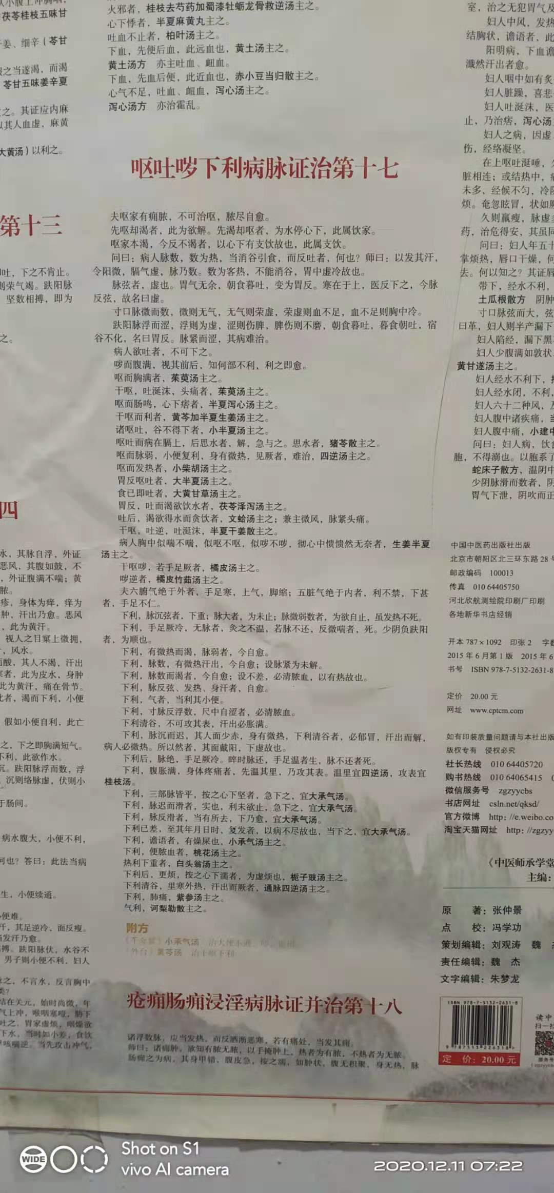 xujianwu 发表于 2020-12-11 23:34 中基,中诊,伤寒,金匮,视频我都下载后刻成光盘了。 但就如我前面所说,这些东西对现在来说还是事吗,几块钱就能买到书,网上不要钱也能下载或看到原文。但能把知道装到自己脑子里有或说是用心的有多少呢。我不知道,但感觉不会太多。我写这个的目的是为了用心,用心,再用心去体会作者的原意。 勤求古训,博采众方,思求经旨 观其脉证,知犯何逆,随证治之 共勉 兴趣是最好的老师,爱我所爱,无怨无悔 |