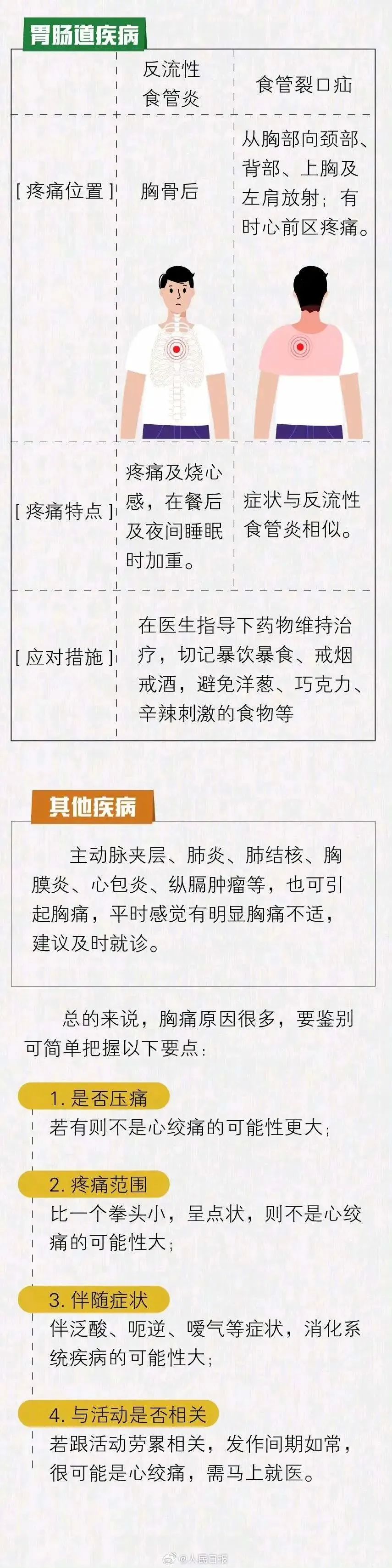 你知道吗?冠心病、气胸、肋间神经痛、胃肠道疾病等都可能引发胸部疼痛,每种胸痛各有典型特征。