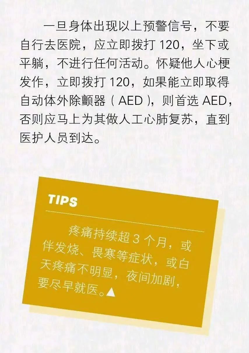提醒:疼痛持续超 3个月,或伴发烧、畏寒等症状,或白天疼痛不明显,夜间加剧,要尽早就医