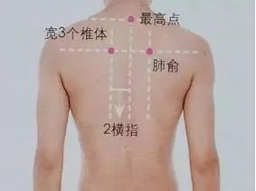 位置:肺俞位于脊椎第三胸椎棘突下旁开1.5寸处。