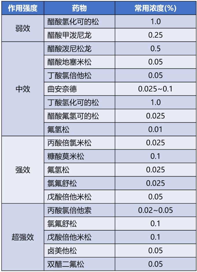 表3:皮肤科常用外用糖皮质激素类药物