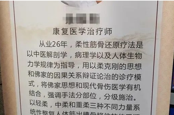 据北京昌平卫生监督报道,昌平区卫生健康监督所在日常执法检查中,发现某中医诊所刘某伪造医师资格证书、执业证书从事中医诊疗活动。刘某现场出示的《医师资格证书》及《医师执业证书》发证日期、执业类别及证书编码等均有问题,卫生监督员怀疑证件伪造,但刘某否认。 人员当场指出证书疑点,《中华人民共和国执业医师法》自1999年实施后实行医师执业注册制度,执业类别为临床、口腔、公共卫生和中医四类,而刘某出示的《医师执业证书》发证日期为“1996年8月9日”,执业类别为“中西医结合”。另外,《医师资格证书》编码由24(27)位数字组成,《医师执业证书》编码由15位数字组成,而刘某的两个证书编码一致,均为7位数。 最后,刘某终于承认自己的证书为伪造,并未取得任何行医资质。昌平区卫生健康委依法对刘某作出“罚款30000元,没收违法所得13150元”的行政处罚,对聘用非卫生技术人员的某诊所作出罚款3000元的处罚。 PART02 名字高大上的假证 康复医学治疗师